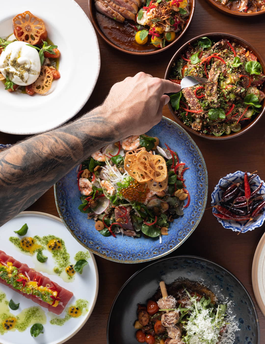 The food at Issara Kata Beach is shaped by the flavors and ingredients that surround us. Our menu brings together the bold character of Thailand, the clarity and balance of Japanese technique and the foundations of European cooking that guide our craft. Each dish is created with intention, designed to feel expressive, comforting and connected to the island we call home.