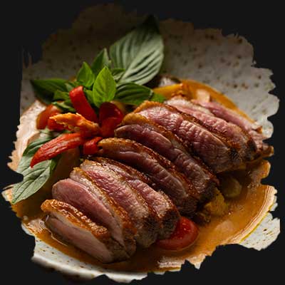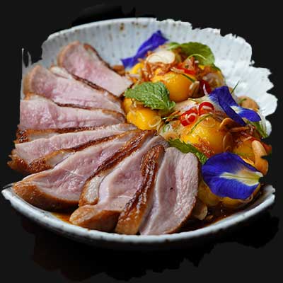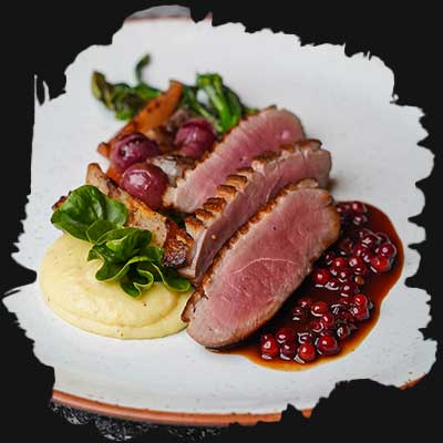 5 Spice Duck Breast with Roasted Fruit & Cranberry Sauce