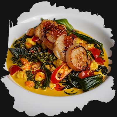 Black Spaghetti with Scallops, Prawns & Curry Sauce