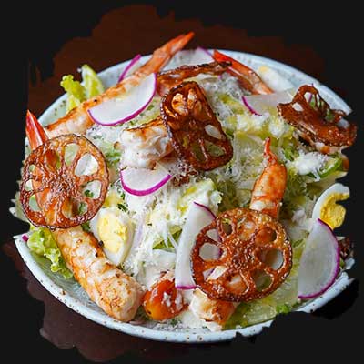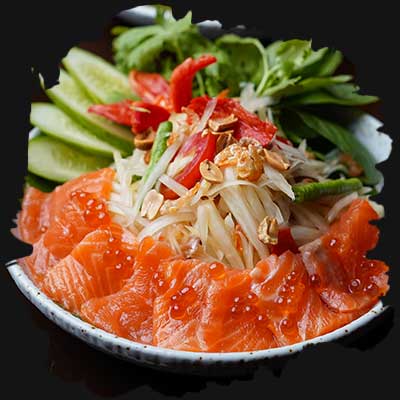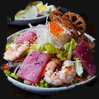 Prawn, Tuna, Crab, Ikura, Mix Greens, Onion, Sesame Dressing