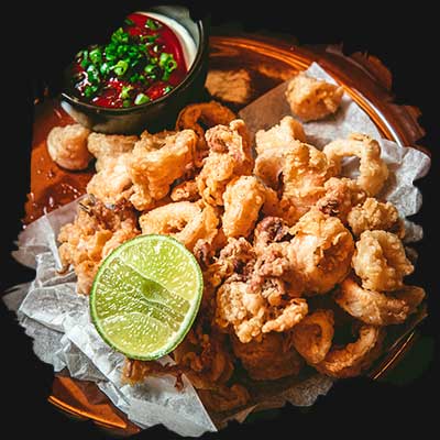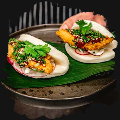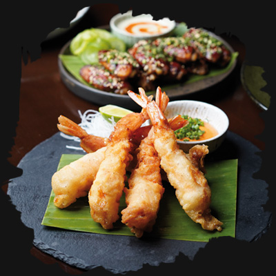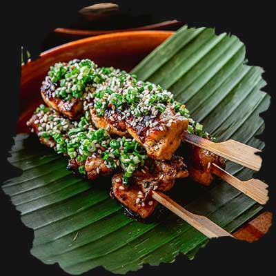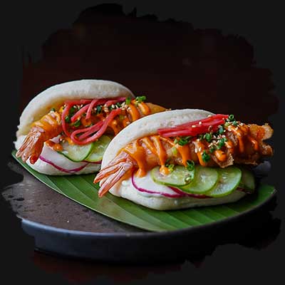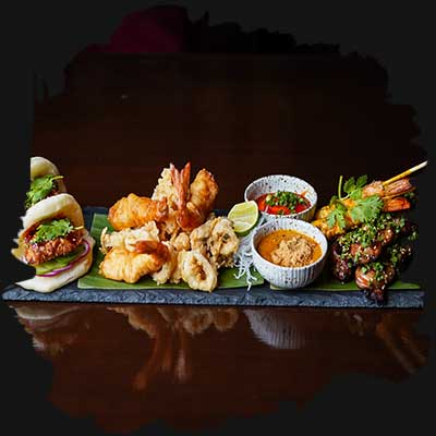 3 pcs Yakitori, Calamari, 3 Prawn Tempura, 3 pcs Satay Prawn, 2 Katsu Chicken Bao Buns