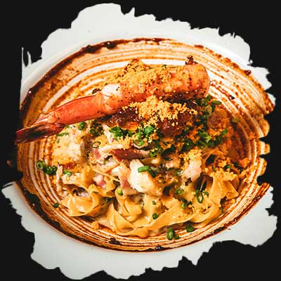 Ikura, Tiger Prawn, Salted Egg, Creamy Sauce, Chives