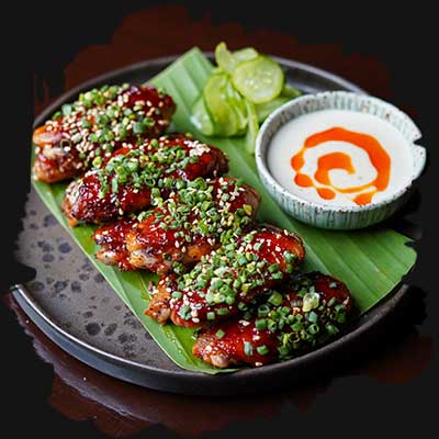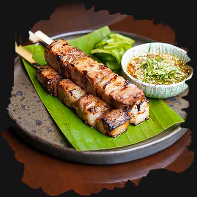 Thai Spices Marinated Chicken Leg, Grilled Sticky Rice, Spicy Sauce