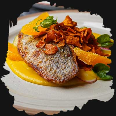 Pan-fried Seabass with Wild Herb Pesto & Gnocchi