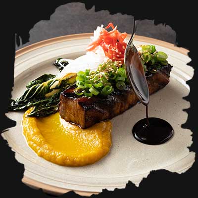 24 Hours Cooked Pork Belly, Chives, Pumpkin Puree, Bok Choy, Ginger