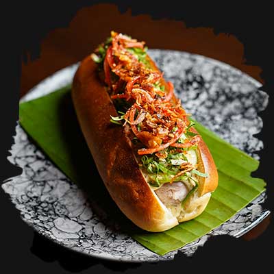 Spicy Thai Nam Jim Jaew Mayo, Pickles, Dill, Sawtooth Coriander, Fried Onion, Sesame