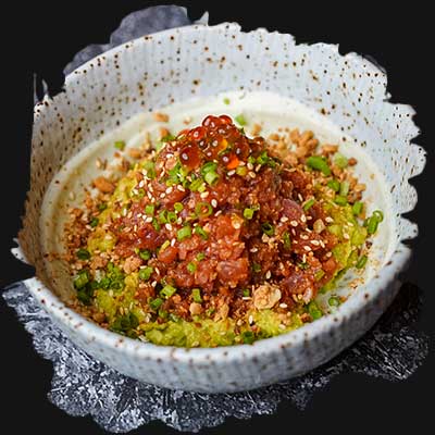Wonton Chips, Avocado, Ikura, Wasabi Mayo, Peanuts, Onion, Sesame
