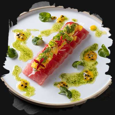 Mango, Passion Fruit, Red Onion, Sesame, Chives, Herb Oil