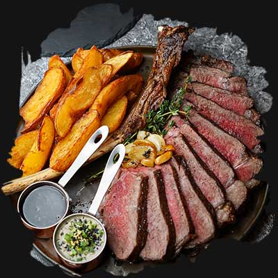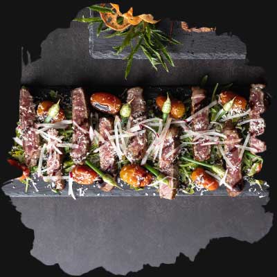 Grilled Striploin Steak, Confit Cherry Tomatoes, Rocket, Parmesan, Balsamic, Chives, Radish