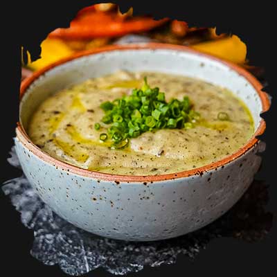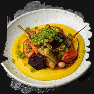 Pumpkin Puree, Pumpkin Seeds, Chinese Chives, Chili Oil, Pickled Ginger, Sesame
